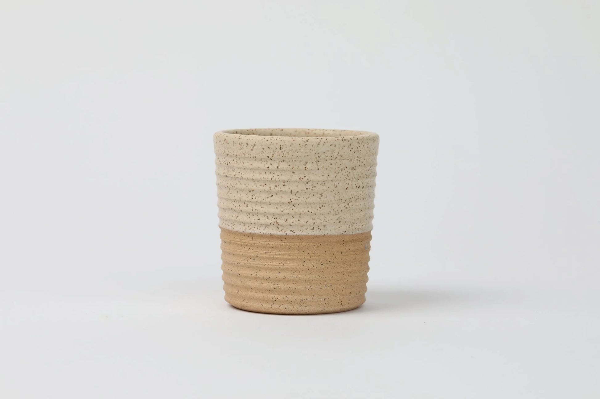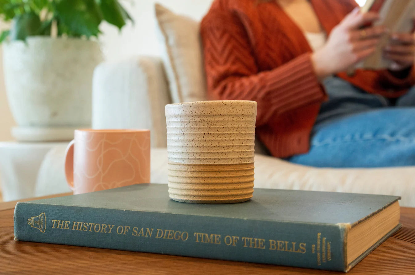These ceramic vessels are locally handcrafted from natural stoneware clay in Oceanside, CA by a small-batch artisan. The earthy, hand-carved ceramic candle container feels soothing to the touch and provides a one-of-a-kind, modern feel. Since our proprietary soy wax easily pops in and out of the unbranded ceramic candle holder, the stoneware candle jar maintains integrity through unlimited reuse.