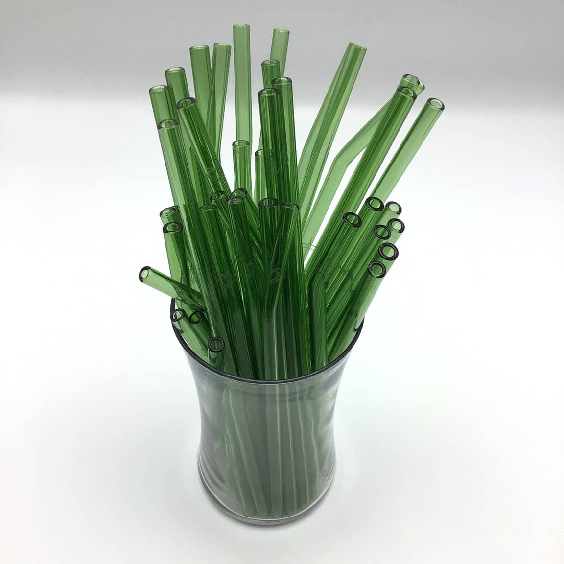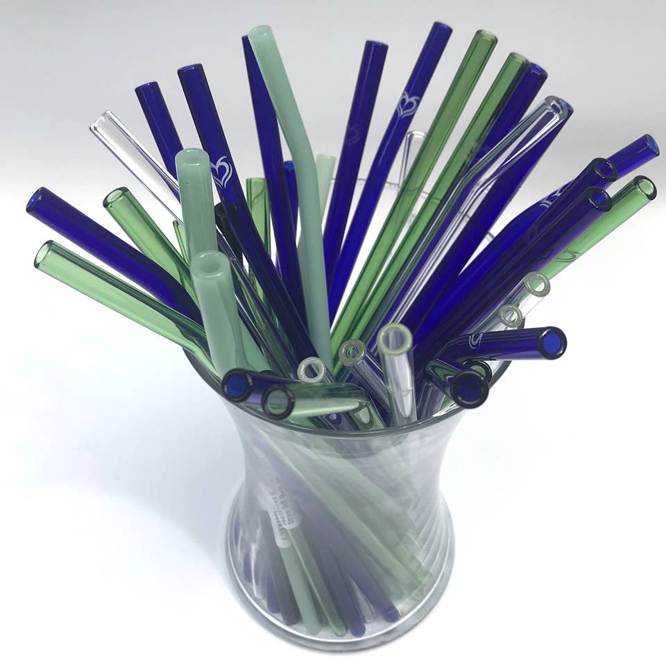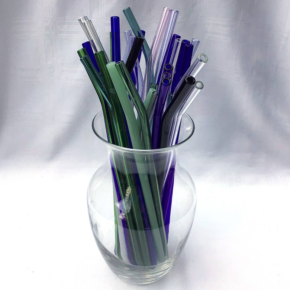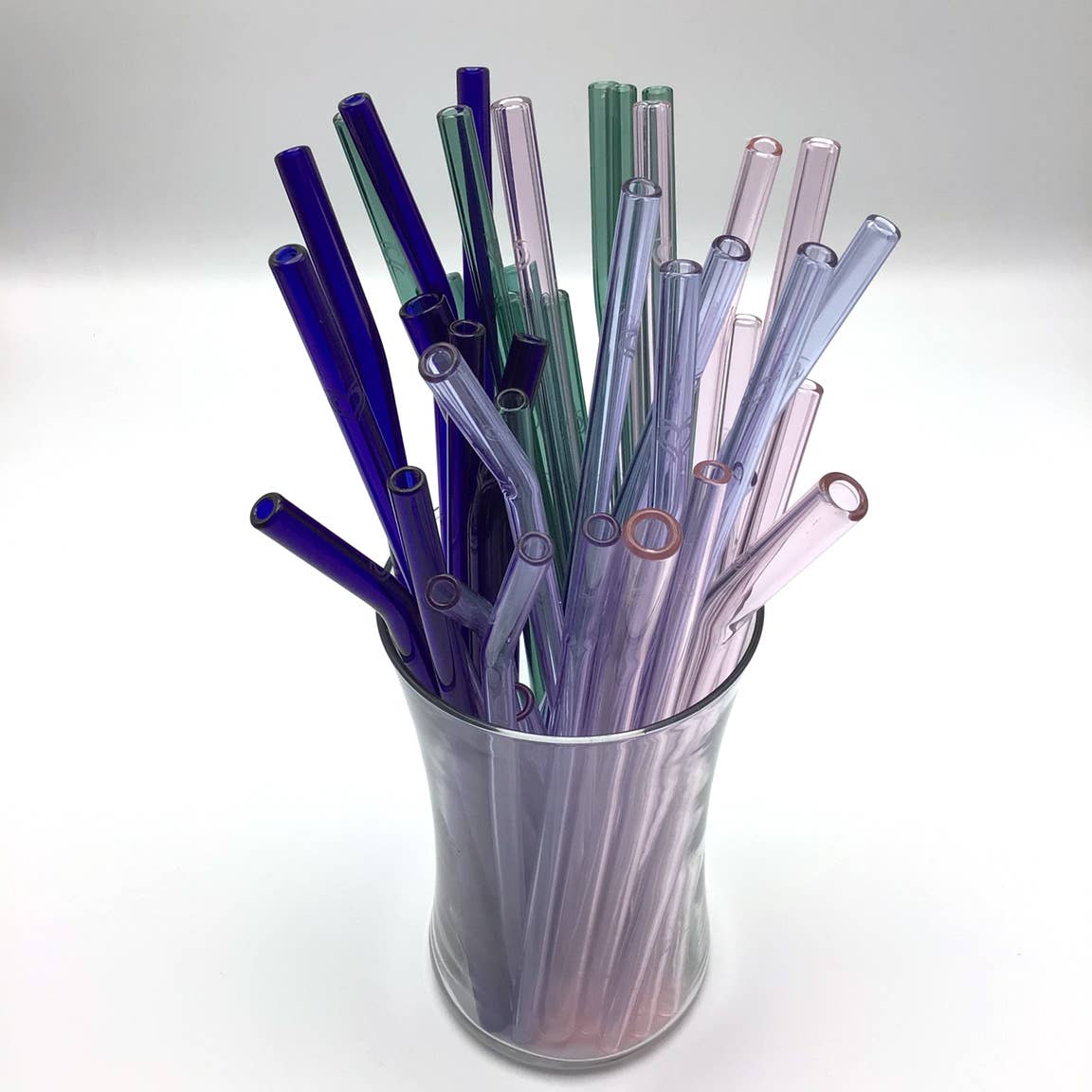 Glass straws of assorted colors, shapes (bent and straight) and sizes. Upgrade your beverage game and ditch single use plastics with these reusable, dishwasher safe glass straws in stunning colors.