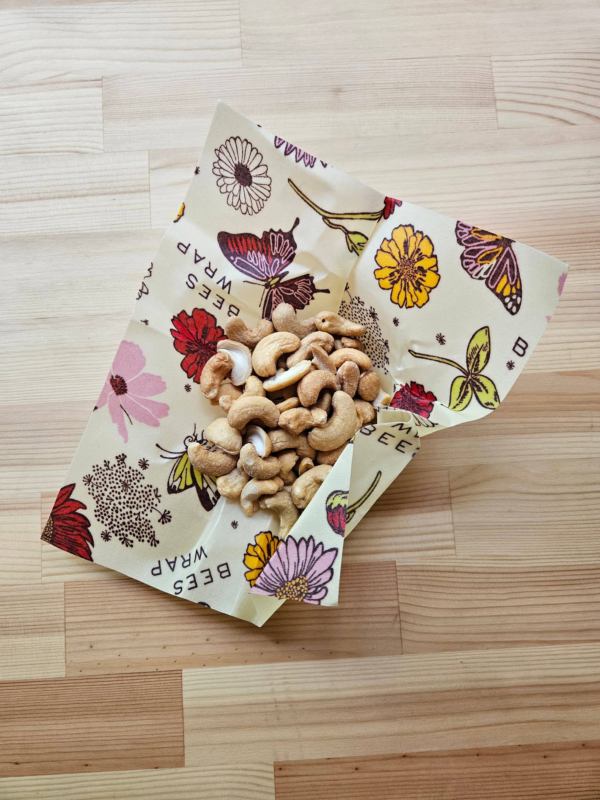 Our reusable fabric food storage wrap is made with Organic Cotton coated with our Vegan wax blend, organic plant oils, and tree resin offering a flexible yet durable wrap that can be used again and again. Handmade in Vermont by a Certified B Corporation. Bee's Wrap® is washable, compostable, and reusable for up to a year. Wash in cool water with a mild soap and let air dry, avoid exposure to heat. Compostable at the end of its usability.