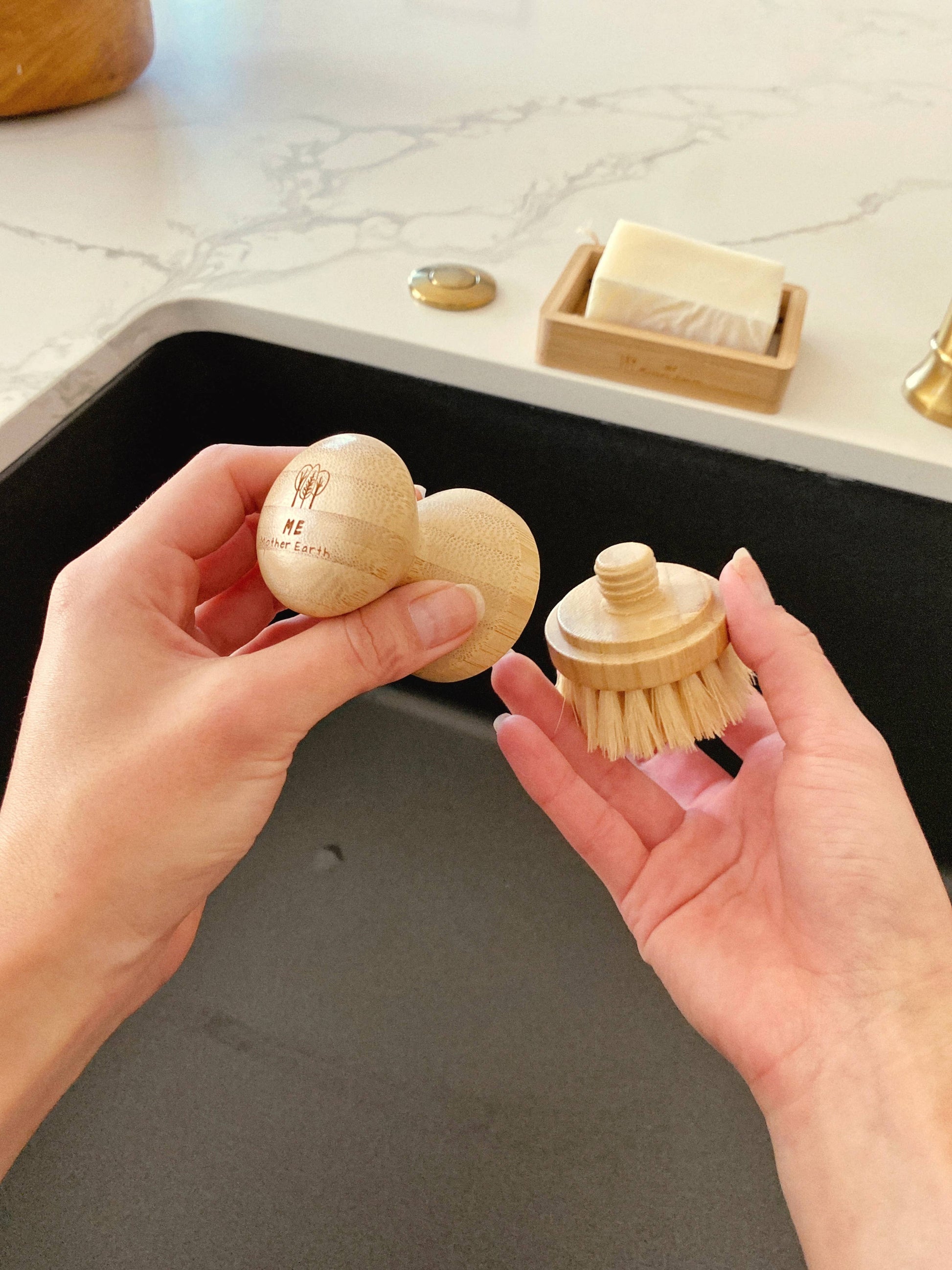 Ready for new bristles? Just twist off the old bristle head and compost it, then twist on the refill head and you're ready to scrub again. Keep the handle for longer + reduce waste!