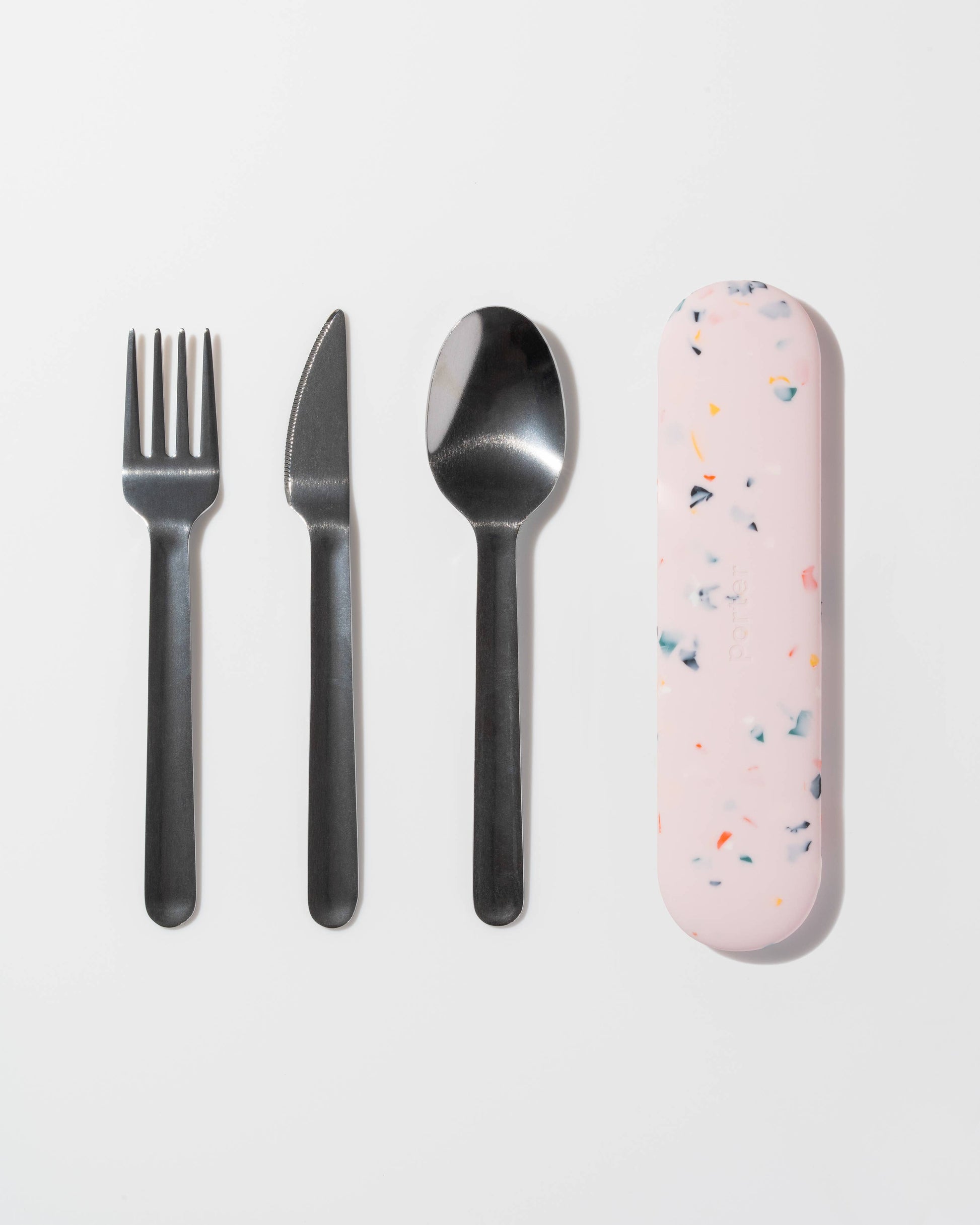 Put a fork in single-use plastic waste. This compact set of stainless steel silverware keeps a slim profile, while the silicone carrying case tucks away compactly in any bag.