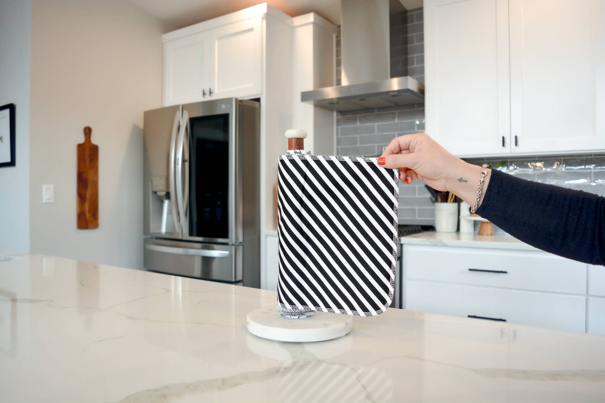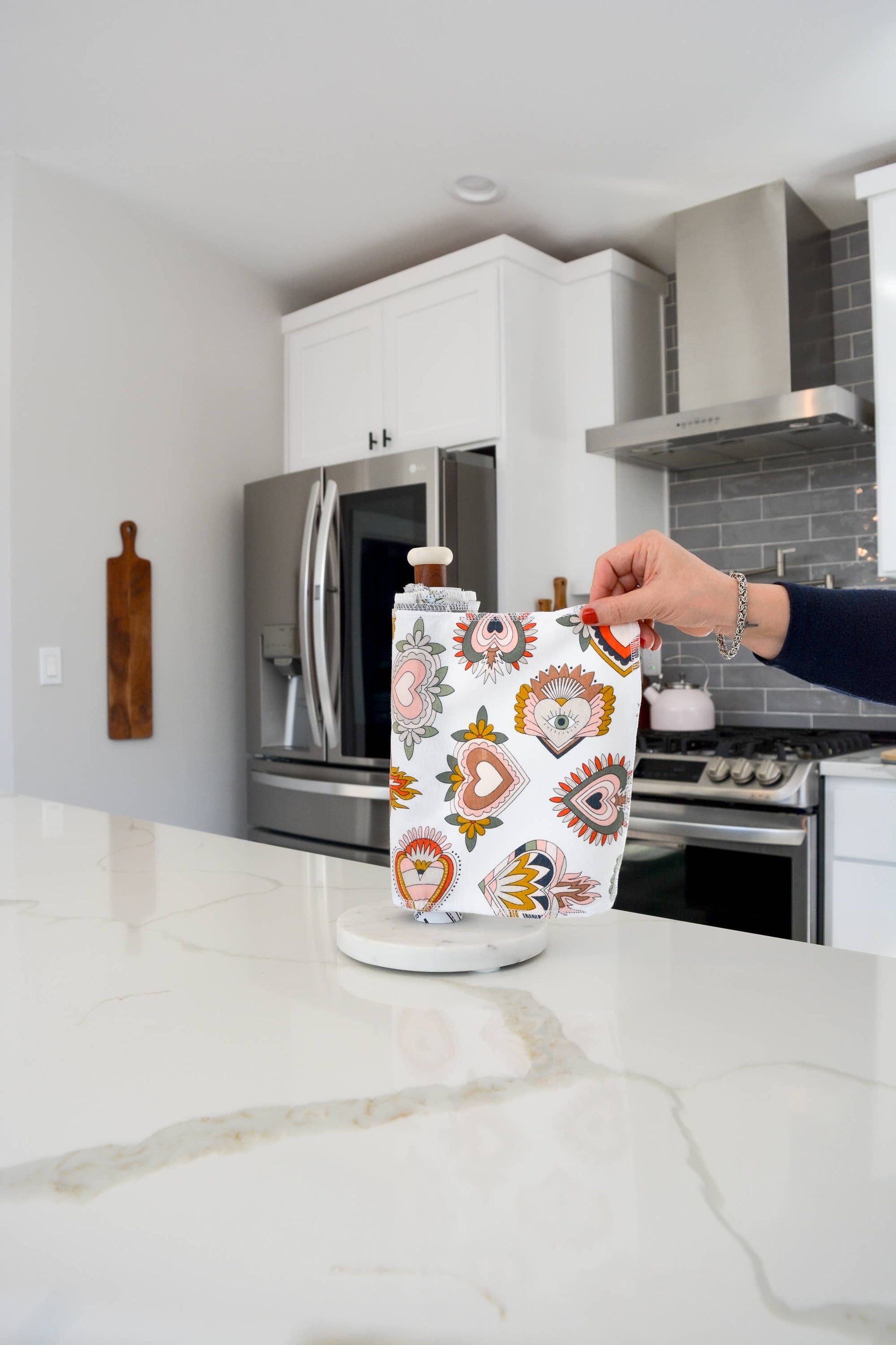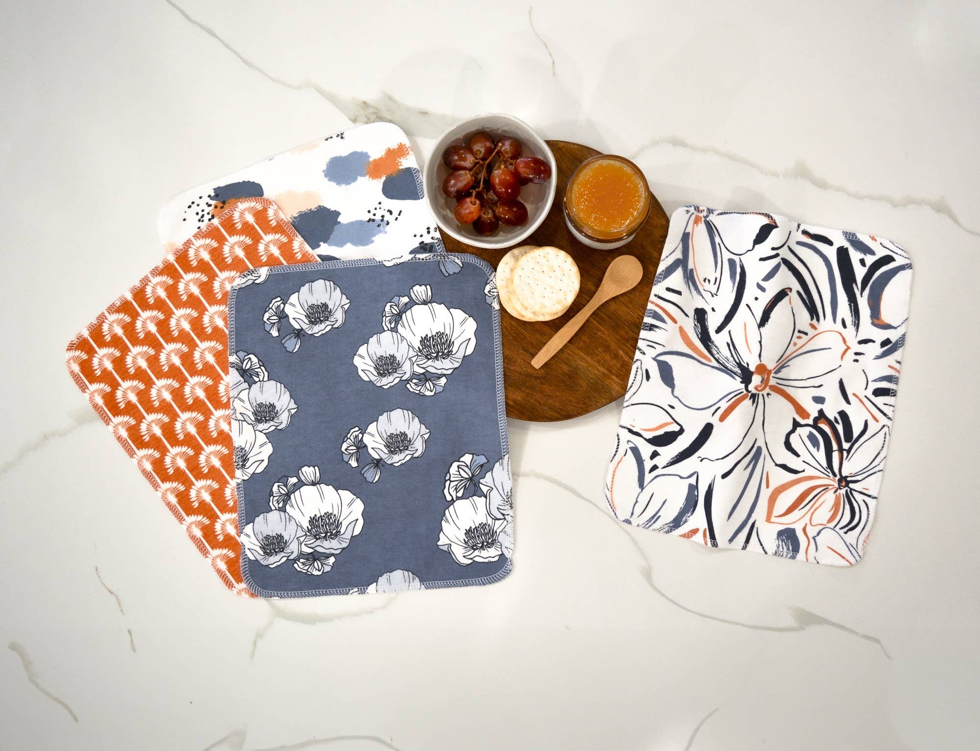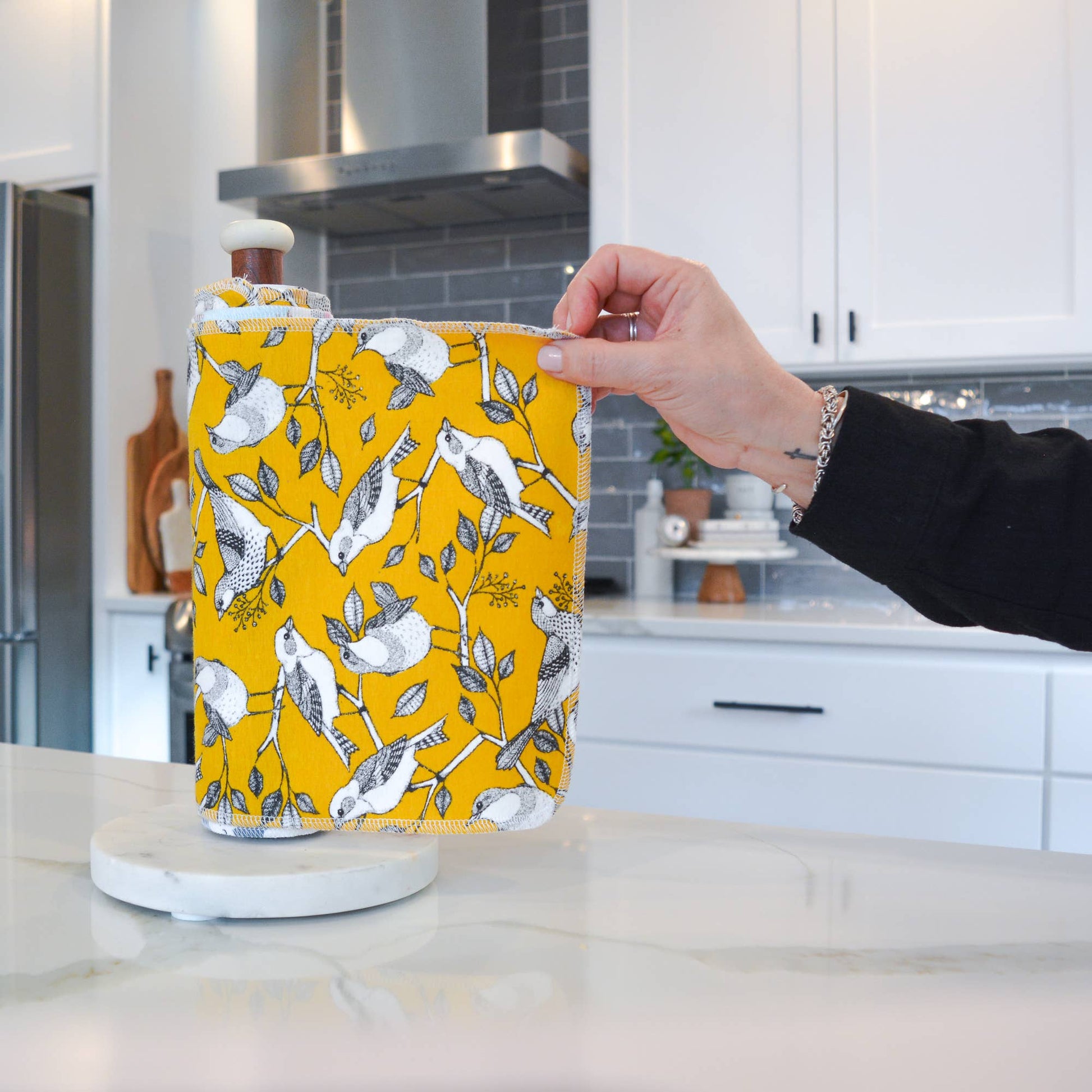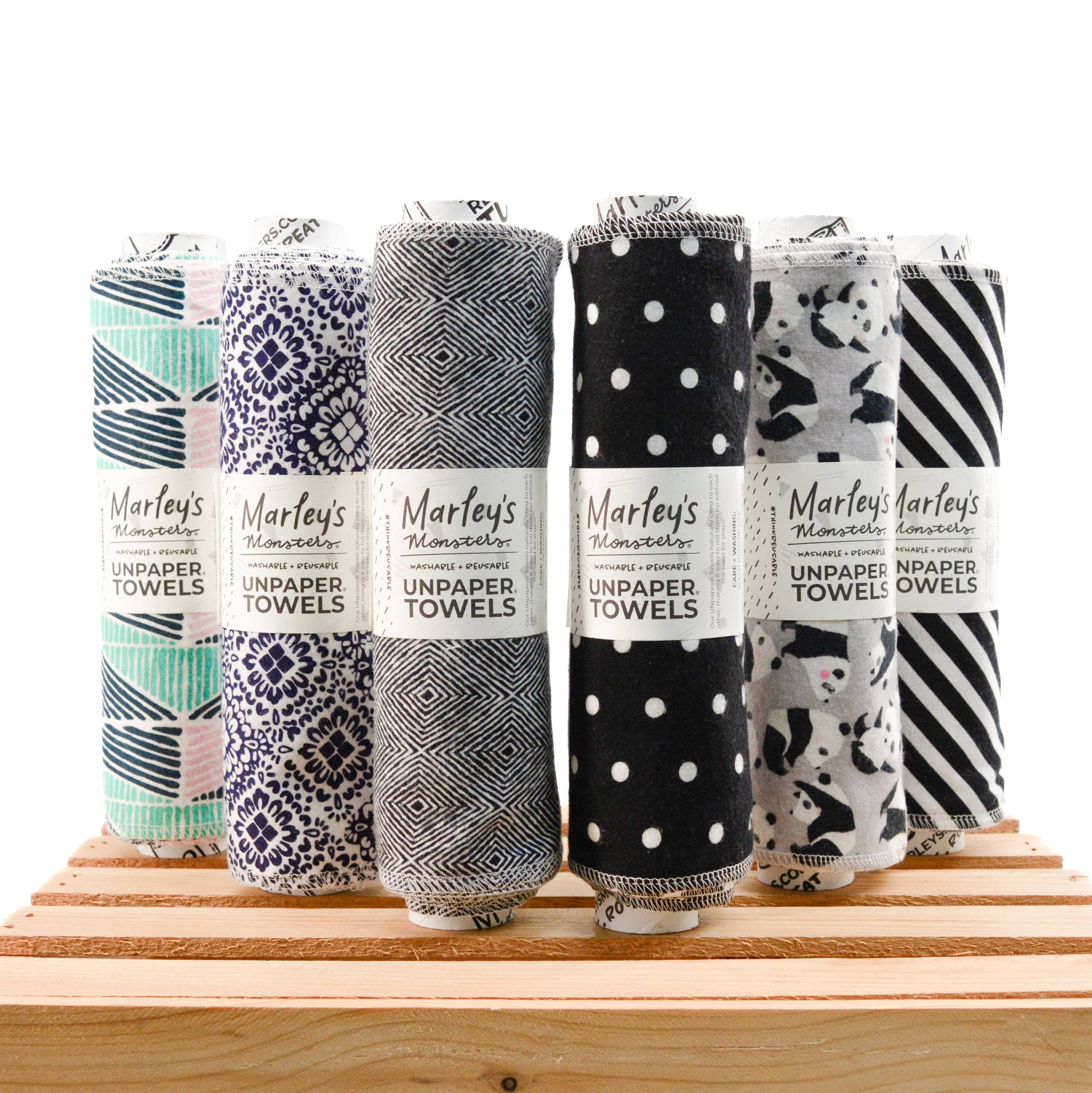 UNpaper® Towels: Prints features 6 different rolls of our most popular UNpaper® Towels (12 count each) UNpaper® Towel set (12 count), each bundled around a sturdy and reusable Kraft tube. -Each UNpaper® Towel is 12" x 10" -Single ply 100% cotton flannel -Edges are sewn for durability and to prevent fraying -Absorbency increases after the first few washes CARE + WASHING: Wash before using. After use, machine wash warm with like colors and tumble dry. Handmade by Marley's Monsters in Eugene, Oregon