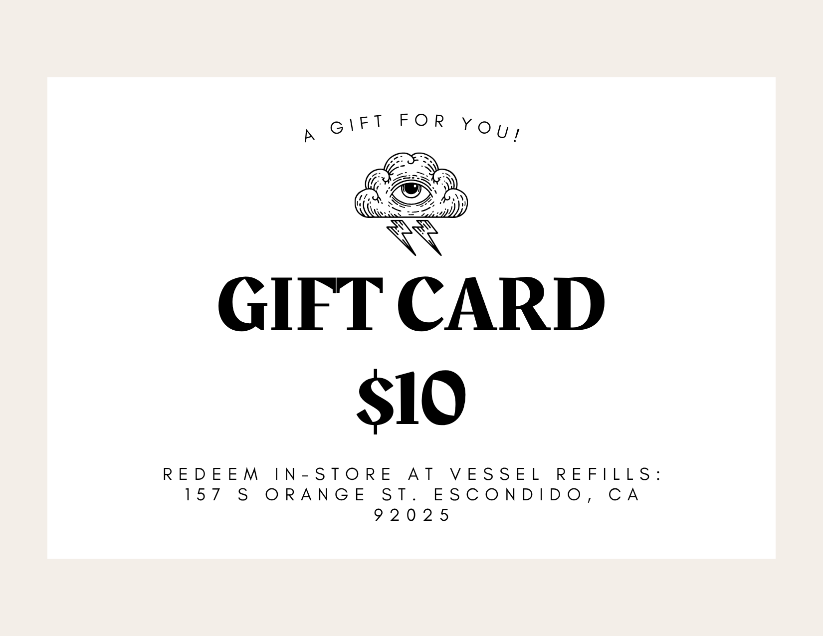 Shopping for someone who's impossible to shop for? Give them the gift of picking something out for themself! Vessel Refills now offers gift cards of $10, $15, $20, $25, $50, and $100. Buy online or in-store and redeem in-store.